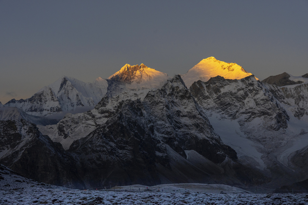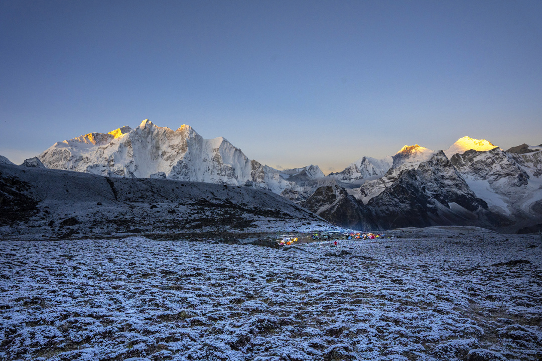 (徒步第2天)早起用餐,天气好的话我们将看到马卡鲁和珠穆郎卓的日照金山以及它们在晓乌错的倒影!此处是整个行程中观看马卡鲁峰的最佳地点之一。中午翻越晓乌拉垭口(4900米),陡坡下降到嘎玛沟的起点卓湘(4030米)山谷地带。一路感受植被的变化。下午沿谷行走,抵达营地兰花谷(兰花谷是通往珠峰东坡和嘎玛沟的分路点)。