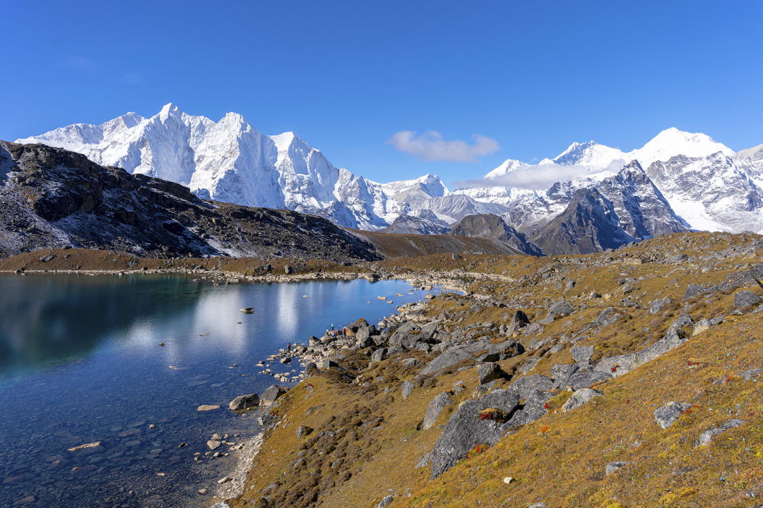 (徒步第6天)沿着“之”字型小路回到汤湘观景台,继续观赏雪山,然后继续一路向上,沿路都能看到壮观的雪山,下午抵达措学仁玛营地,在营地周围自由拍摄,这里不仅可以看到群山(珠峰,洛子峰,珠穆郎卓、马卡鲁)还能在周围的湖边看到倒影,以及珠峰巨大的冰川。