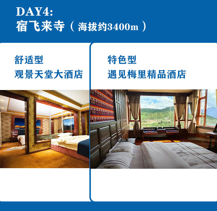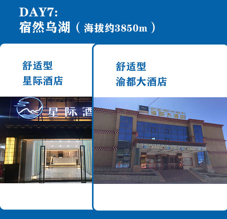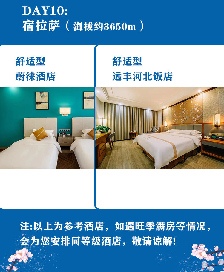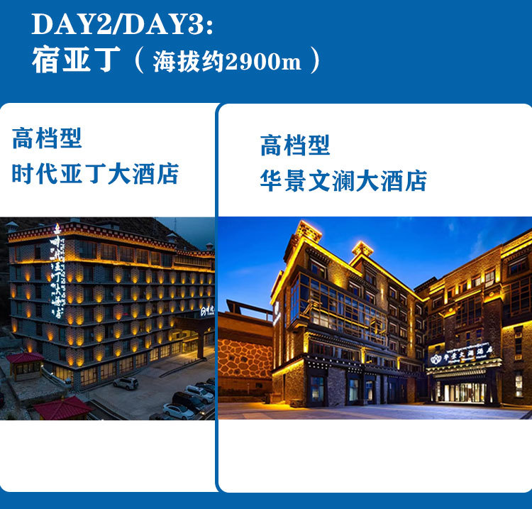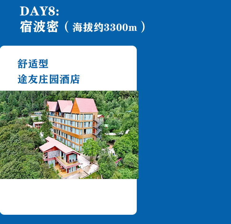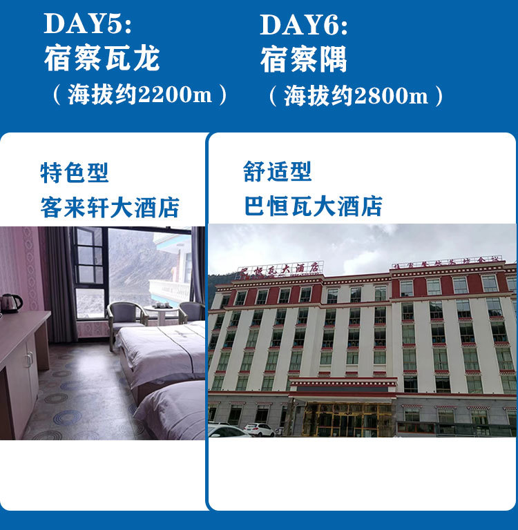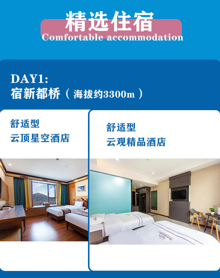 全程甄选低海拔、高品质酒店,保障出行品质!