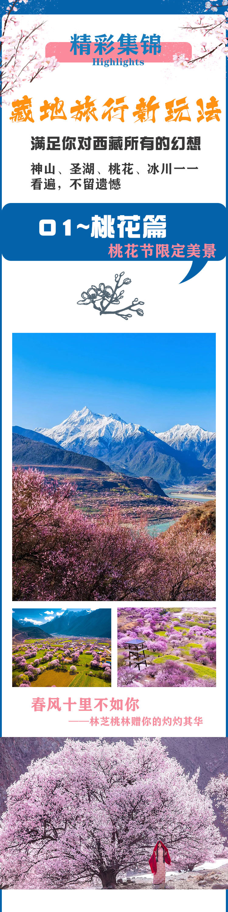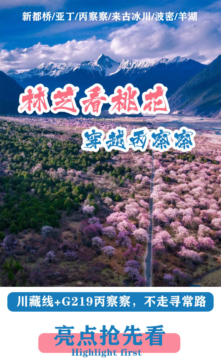 早起拍然乌湖最美倒影,早餐后沿着帕隆藏布顺流而下来到第一代藏王聂赤赞普的出生地波密县。 “西藏小瑞士”波密县,从高山峡谷跨越到了波密县这里是参天大树,菌类王国,高原的氧吧!午餐后我们驱车前往传说中的桃花沟-吉尼斯纪录中国最大的桃花谷-波密桃花沟,长达30公里,这里有20万株,树龄平均400岁左右的野生桃树遍布整个桃花沟,这里就是诗人诗句中国的世外桃源!