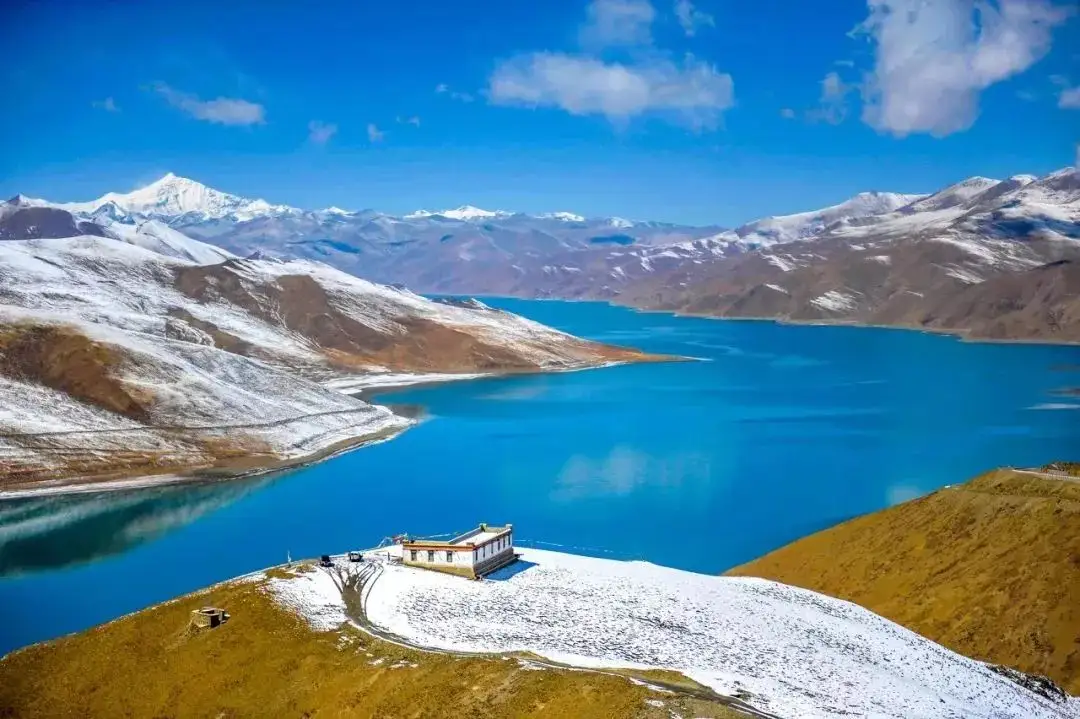位于西藏自治区浪卡子县境内的羊卓雍措(简称“羊湖”)藏语意为“碧玉湖”、“天鹅湖”,与纳木措、玛旁雍措并称西藏三大圣湖。羊湖湖面海拔4440多米,湖面颜色随天气和季节变化而不同。冬日的羊卓雍措湖水湛蓝,如诗如画。