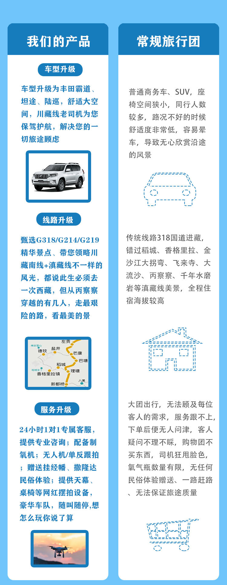 氧气、记忆棉U型枕、雨衣、暖宝宝、经幡、葡萄糖、哈达、隆达、收纳背包、藏区地图、精美车贴等一应俱全,暖心出行!