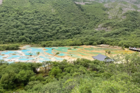 10:00--13:00:【黄龙风景名胜区,平均海拔约3500米,游玩时间约3小时,旺季(6月1日至12月15日)门票170元/人,淡季(12月16日至5月31日)门票60元/人,上行索道80元/人,下行索道40元/人,12月16日至3月31日索道停运】这是一个以奇幻美丽的钙化池闻名于世的景区,景区内众多的钙化池池水清澈见底,五光十色十分漂亮,还有森林、峡谷、雪山、瀑布等众多的自然风光,被称为“人间瑶池”。