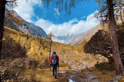 早晨在木骡子营地欣赏美景,营地简易早晨后启程出发。离开木骡子营地,轻装向长坪沟尾徒步、经水打坝,乌龟石,羊满台,抵达叉子沟营地扎营。到达营地后,注意休息,为第二天翻越4800米的高海拔垭口做准备。营地海拔为3800米,徒步时间为6-7个小时。