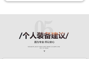 装备参考:60L左右登山包(带防雨罩)、28随身包、睡袋(根据季节温度选择)、冲锋衣裤、软壳衣裤、排汗速干衣裤、防水登山鞋、保暖衣物(棉服或者羽绒,根据季节温度选择厚度)、徒步袜(多双)、头灯、保温杯、餐具、帽子、手套、太阳镜、防晒霜、雪套(季节性需求)、常用药品、个人随身物品及证件等。
