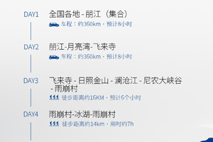 交通:行程中4天旅行用车,一人一正座(9、17、39座等,根据人数安排车型,可能会和雨崩常规7日的拼车往返);