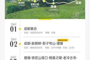 今天是返程的一天,大约晚上7点到达成都散团。因车程较远,不确定是否堵车,建议买第二天返程的大交通。