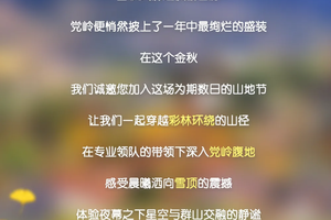 18、本次活动行程特殊、目的地特殊,谢绝有关吃住行等方面的投诉,虽然我们会尽力为大家安排好一切。