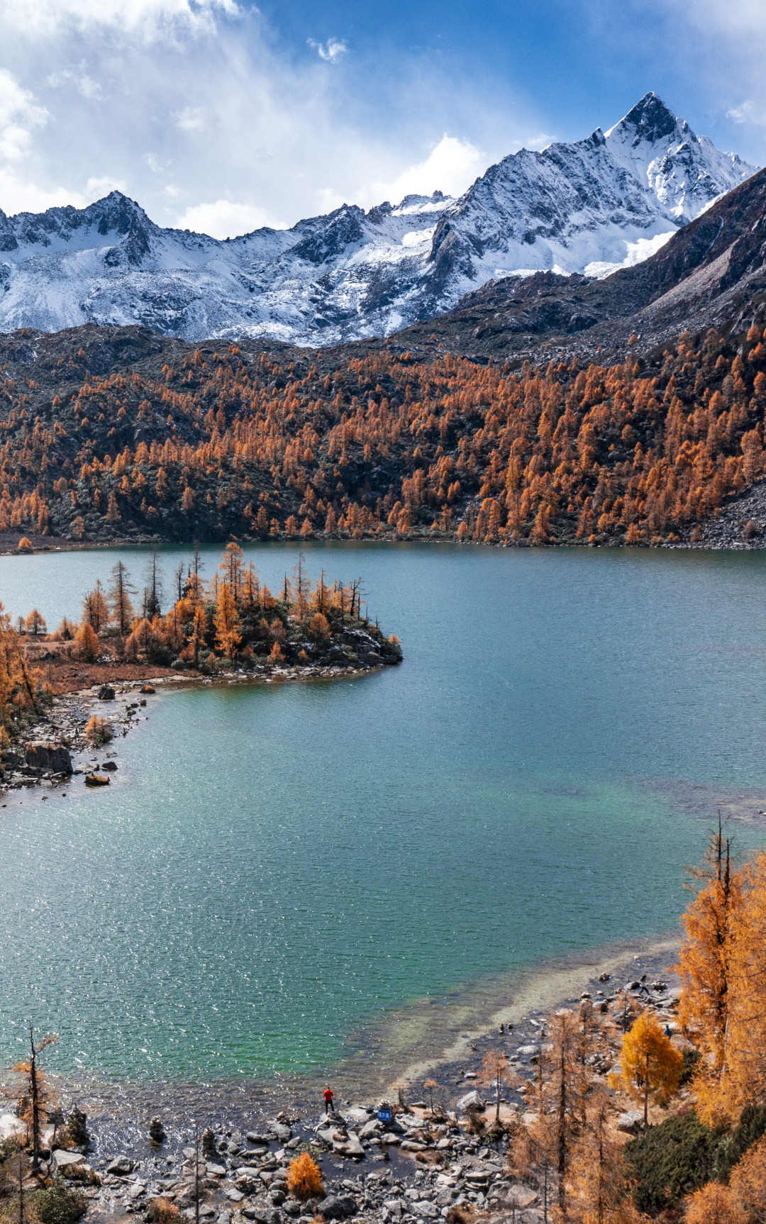 从葫芦海到卓雍措的徒步路线被誉为 “眼睛上天堂,身体下地狱”。穿越杜鹃林时,枝干盘曲如虬龙,阳光透过树叶洒下斑驳光影;翻越垭口后,卓雍措突然映入眼帘,那种豁然开朗的震撼感难以言喻。卓雍措的湖水呈现出层次丰富的蓝绿色调,晴天时如翡翠般温润,阴天时则深邃如宝石。湖岸线曲折蜿蜒,形成多个小湾,远处的雪山、近处的森林与草甸倒映其中,构成一幅立体感极强的山水画卷。而后沿着湖边一路向上翻越垭口,到达甲依拉措此湖一年迎接的客人不足200人,并且湖水常年呈现乳白色,当地又称“牛奶海”,从这里仰望党岭三神山又是另一种风景,下午时分我们开始沿河谷下撤回到公路旁,乘车返回党岭村修整。